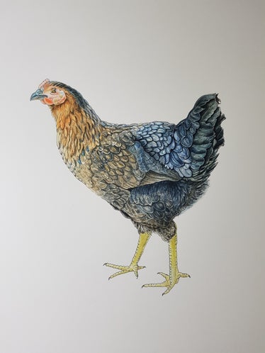 Het kipje uit Anilac (38 x 38 cm) aquarel en inktpen (privé collectie) - The chicken from Anilac, watercolor and ink pen (private collection)